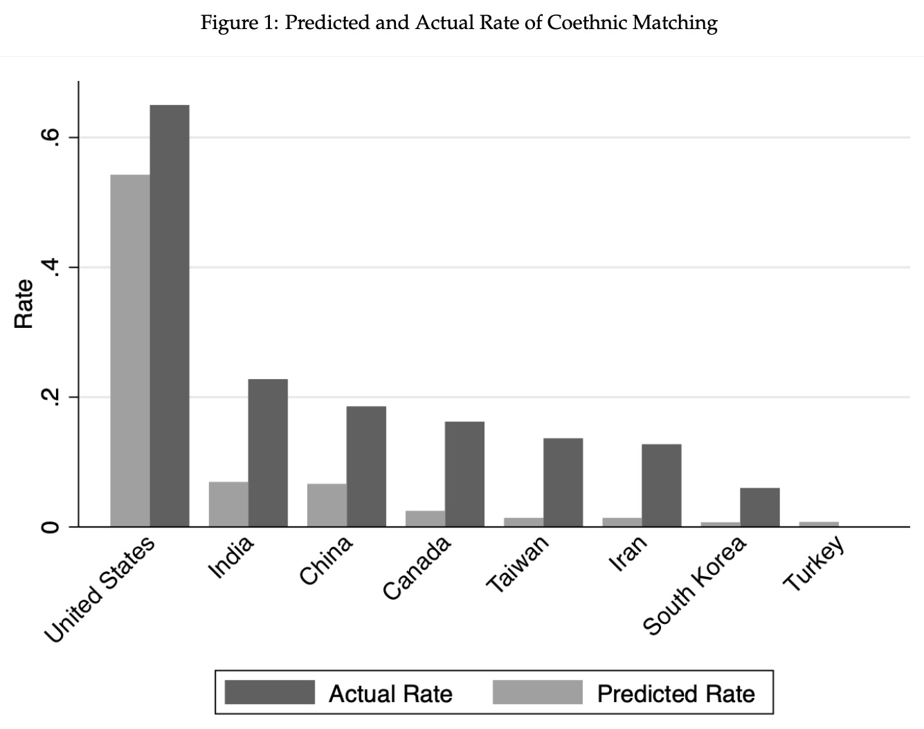 The fact that non-American ethnic groups tend to favor their own in academia makes this worse, with non-American advisors being more likely to mentor, provide internships and industry connections, and otherwise assist their co-ethnics.