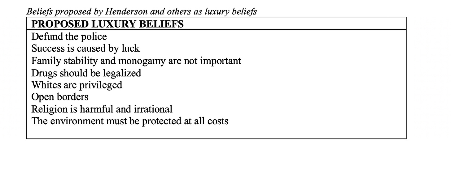 The luxury belief thesis is almost certainly incorrect as currently articulated in the literature. Nevertheless, the name “luxury beliefs” might be appropriate for a subset of beliefs that arise because elites are often isolated from and ignorant of the lives and behavioral propensities of ordinary people. In this, luxury beliefs are related to luxury, but they are not like luxury goods. To the extent that they signal, they signal tribal affiliation. And many of them are best understood as sincere but misguided attempts to understand or change the world while seeing it through a glass clouded by wealth and privilege.
