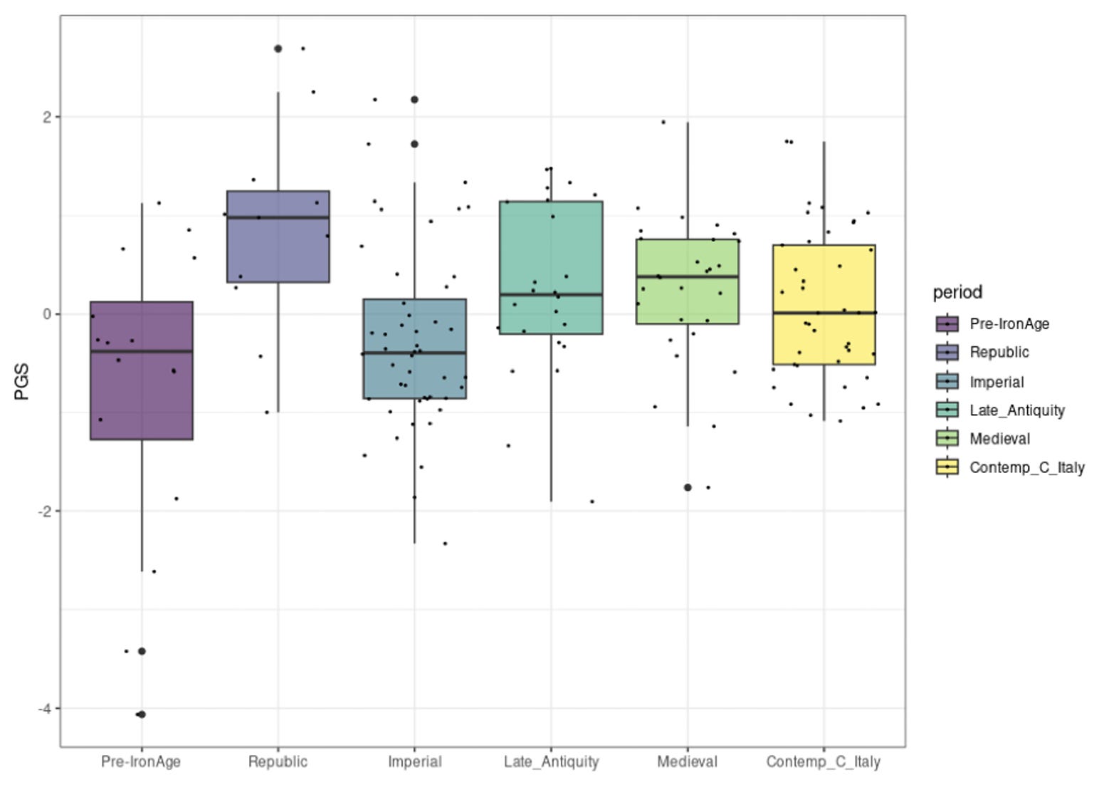 Piffer D, Dutton, E., & Kirkegaard, E.O.W. (2023). Intelligence Trends in Ancient Rome: The Rise and Fall of Roman Polygenic Scores. OpenPsych. Published online July 21, 2023. https://doi.org/10.26775/OP.2023.07.21